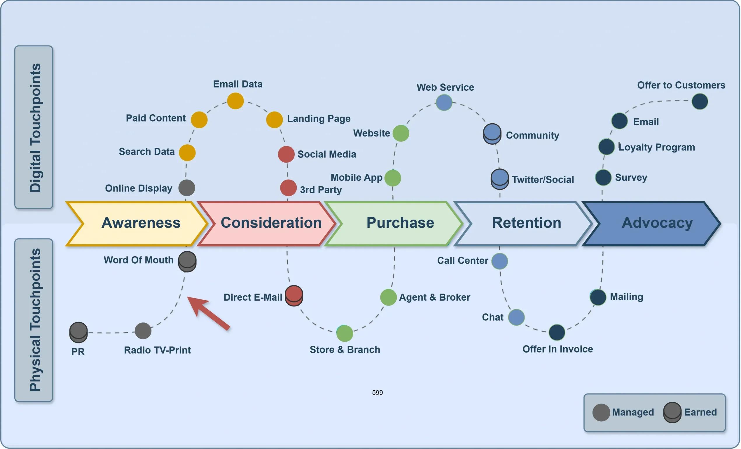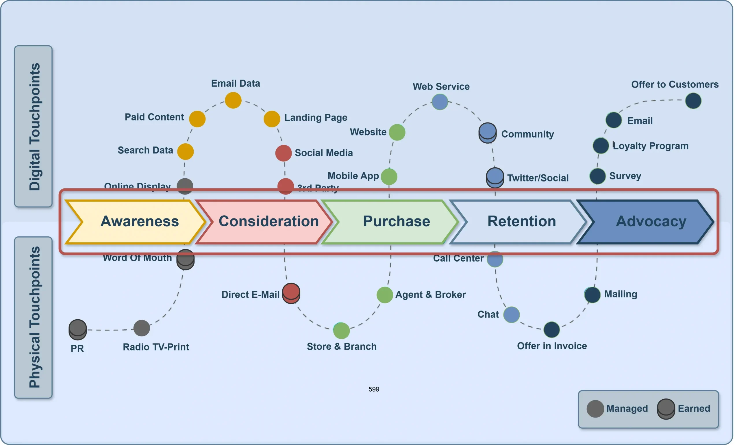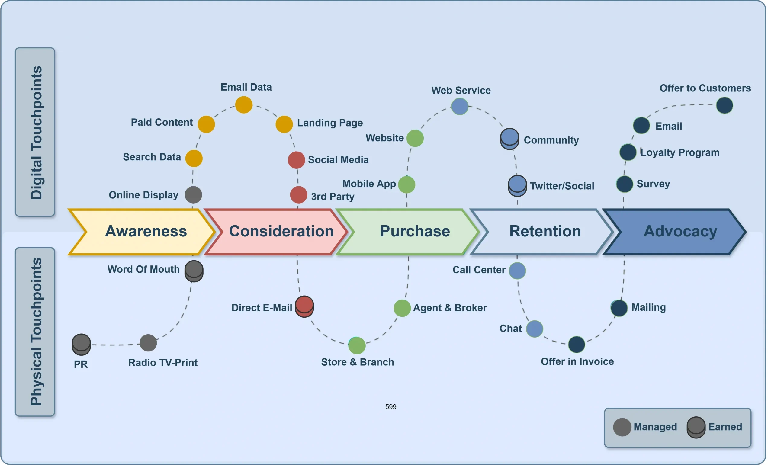 - The customer flow from Awareness to Advocacy.