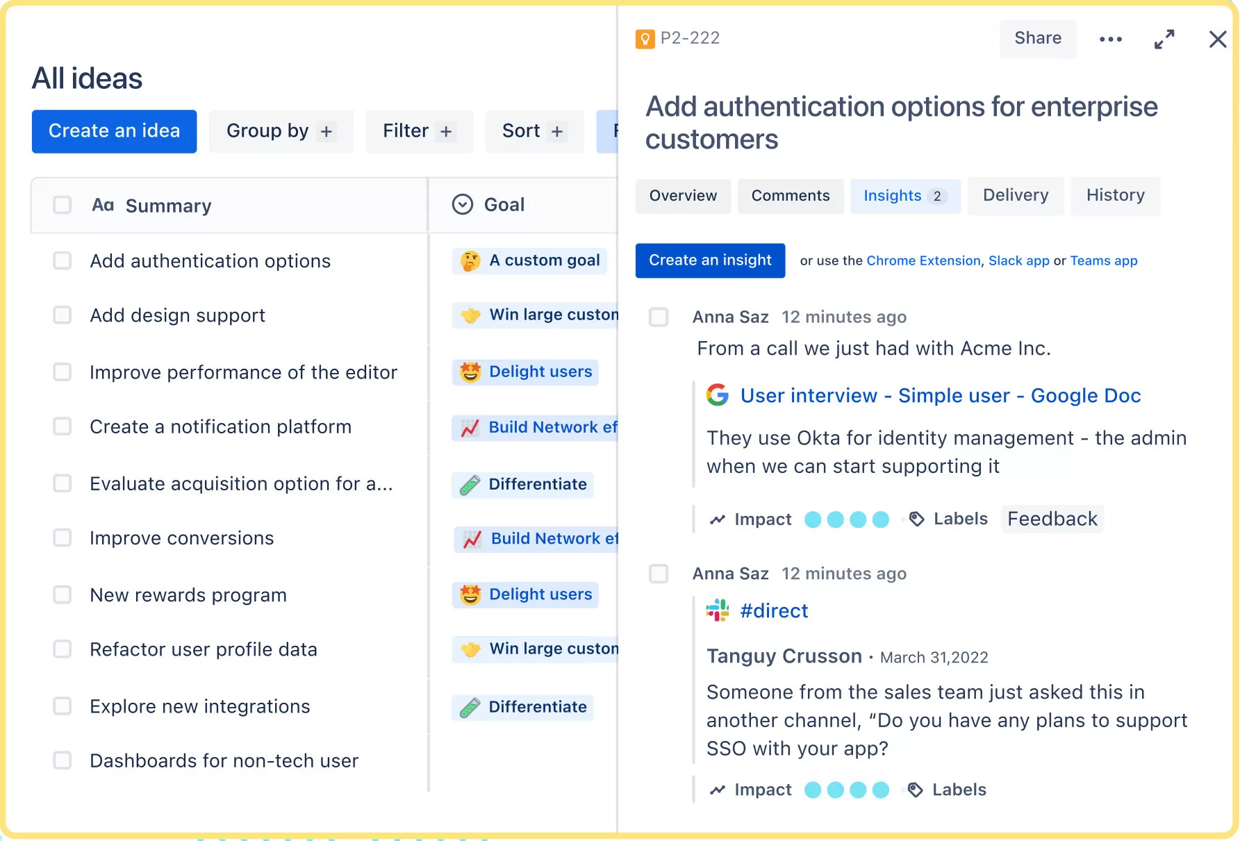 • Use the fields Impact / Effort, Confidence, RICE, as well as Team Voting — available out of the box.