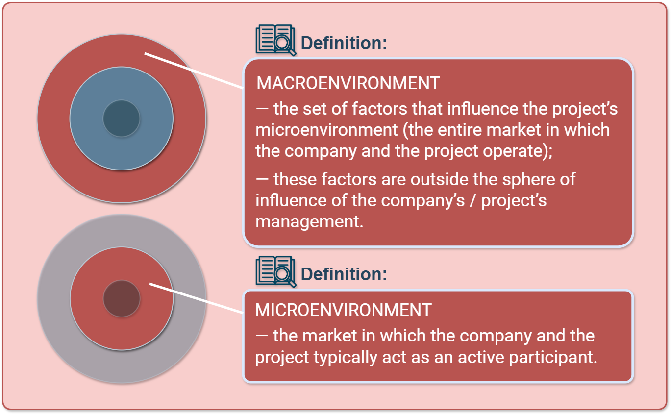 This is a fundamental step: it forms the context in which the company, the project, and the competitors will operate.