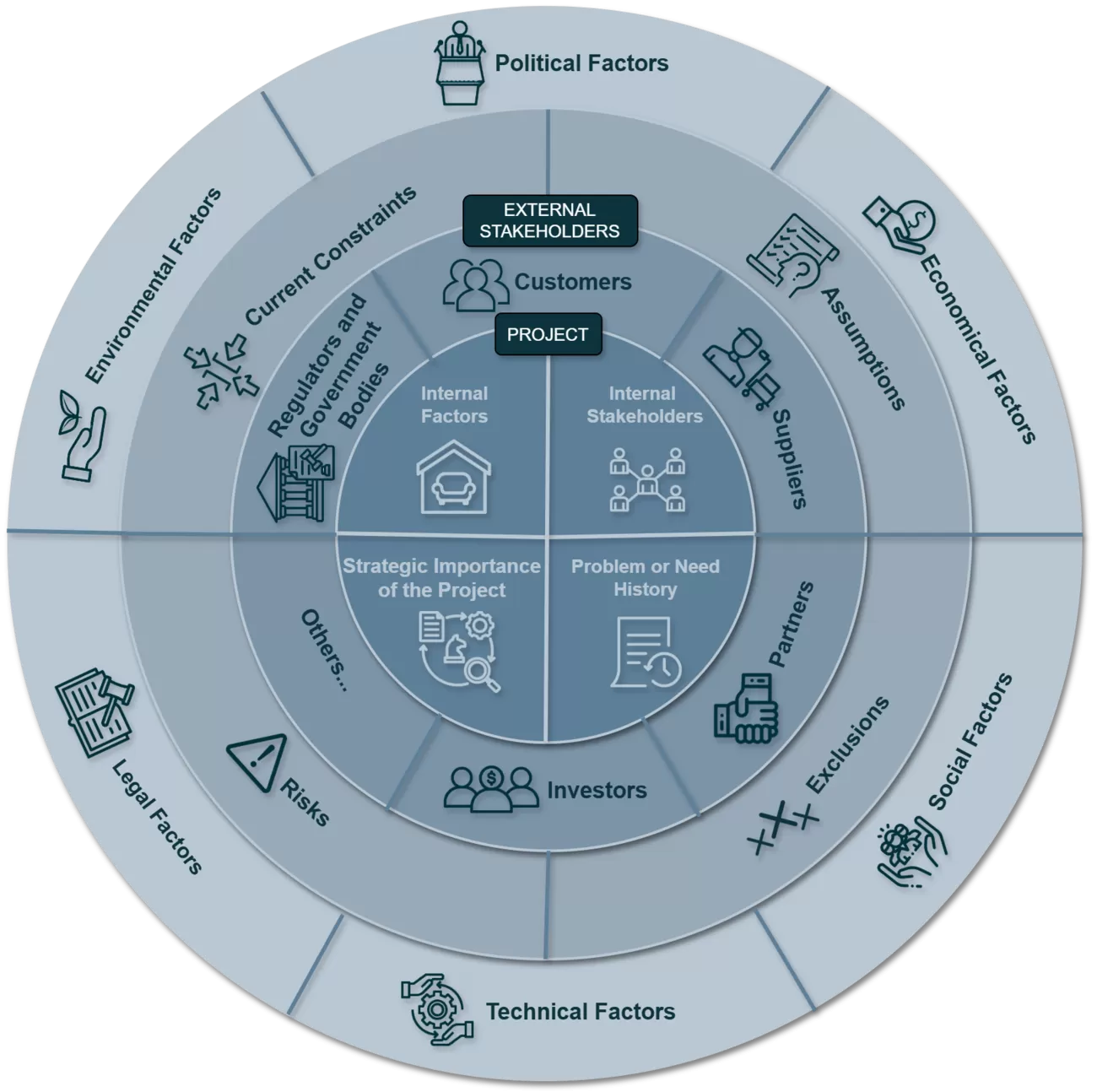 This includes economic, legal, political, social, and technological factors that may impact the project. For example, changes in legislation, market trends, new technologies, the economic situation, or social shifts.