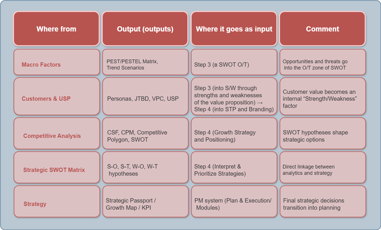- Strategic Passport — a consolidated map of goals, segments, and approaches.