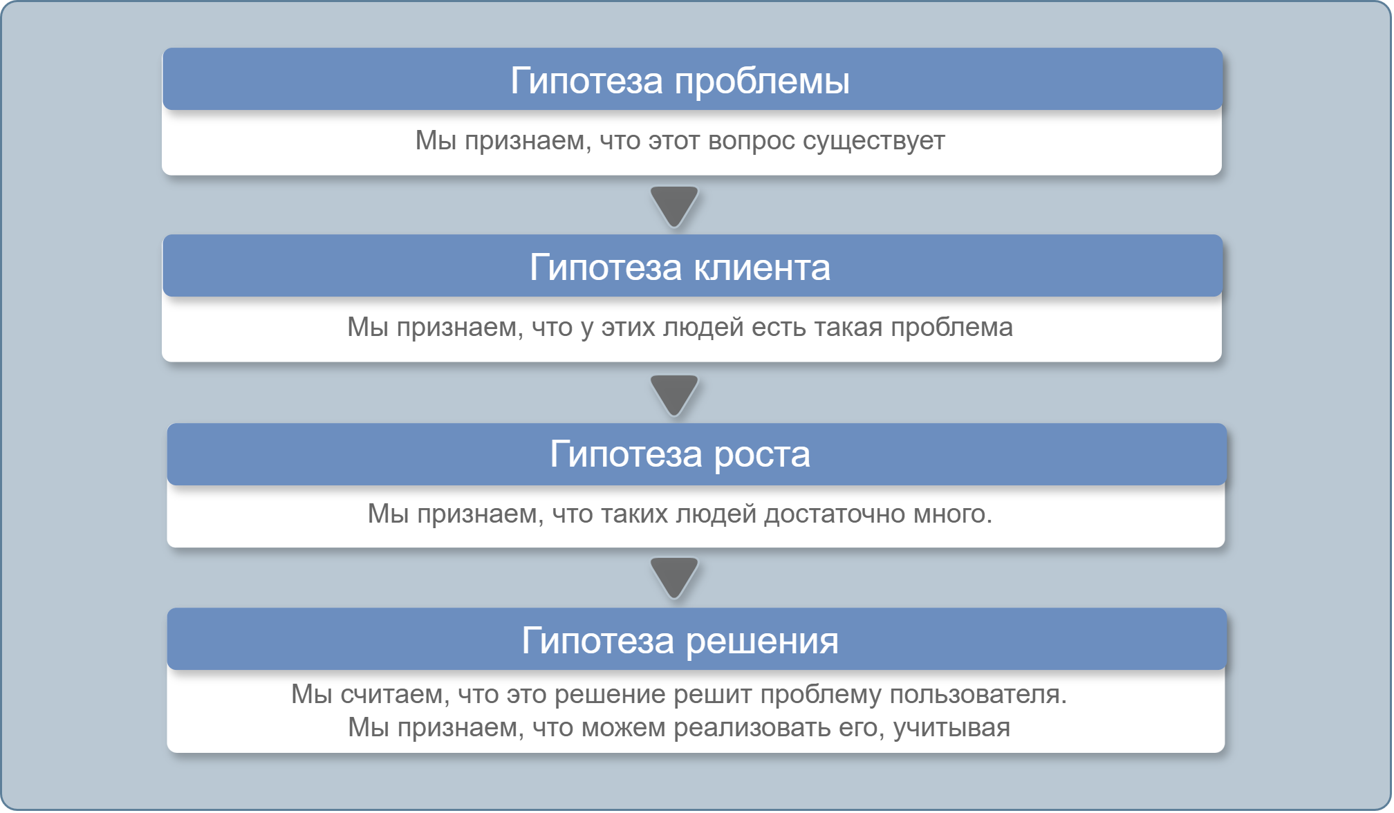 это методология создания и управления стартапами, направленная на быстрый и эффективный выход на рынок с минимальными рисками и неопределенностью. В бизнесе и разработке продуктов важно формулировать и проверять гипотезы, чтобы подтверждать идеи и принимать решения на основе данных.