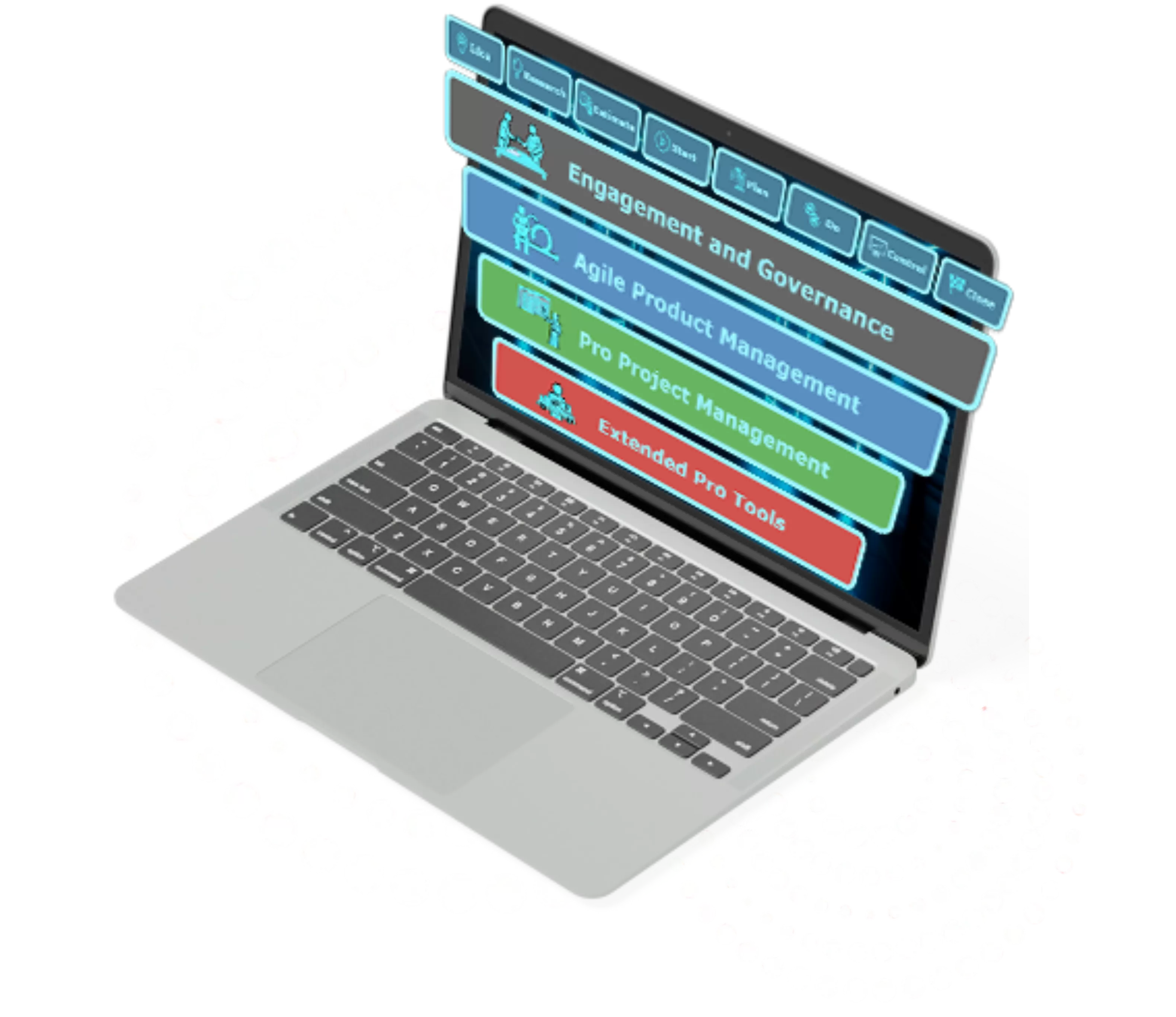 интеграция комплексного подхода к управлению проектами через следующие шаги: Идея, Анализ, Оценка, Старт, План, Работа, Контроль, Закрытие.