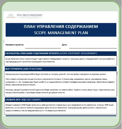 Таким чином, план управління змістом — це не просто документ, а комплексна сукупність процедур та інструментів, які допомагають команді проєкту управляти змістом робіт, вносити обґрунтовані зміни й забезпечувати досягнення результатів відповідно до встановлених очікувань.