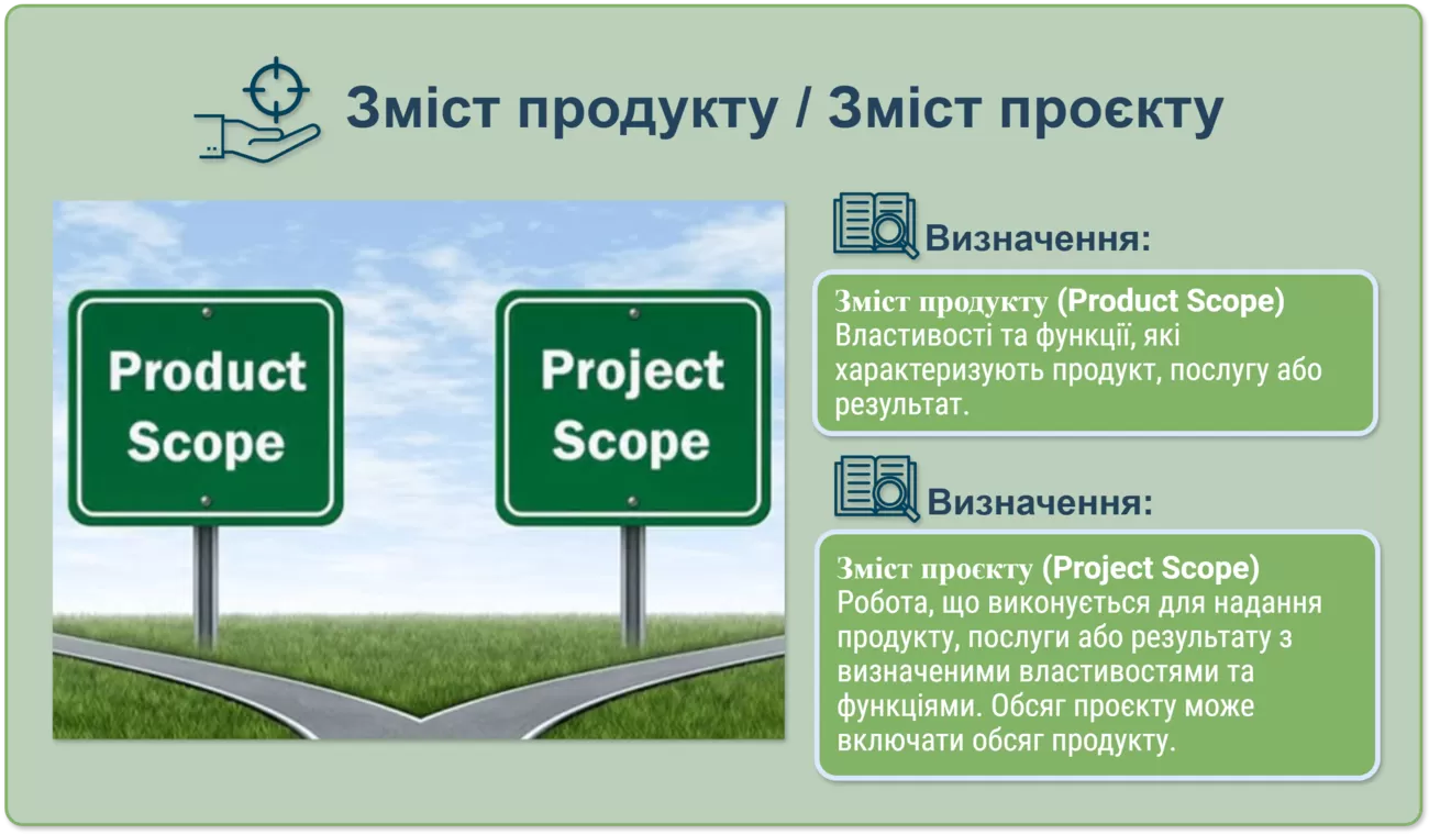 Щоб проєкт мав чіткі межі й цілі, важливо розрізняти зміст продукту та зміст проєкту.