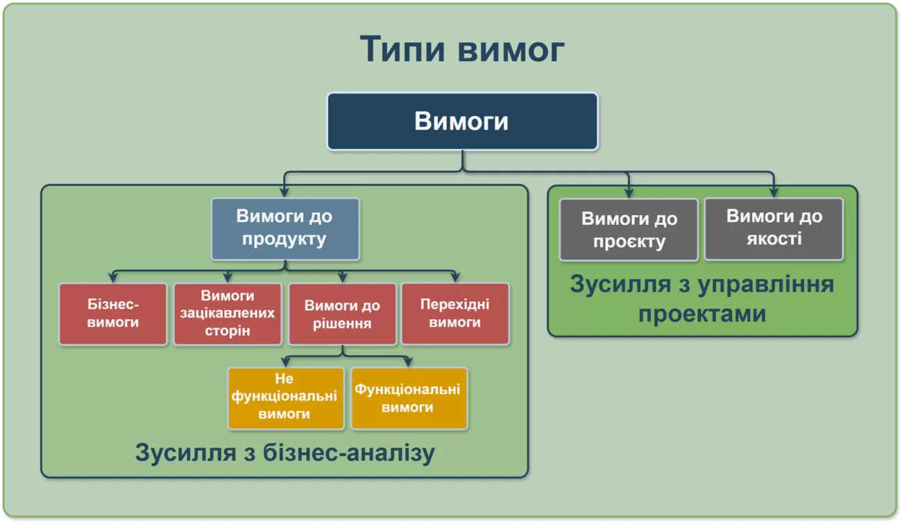 Успішне управління проєктом неможливе без обробки обох типів вимог: Функціональні — що продукт повинен робити; Нефункціональні — як саме він це робитиме. .
