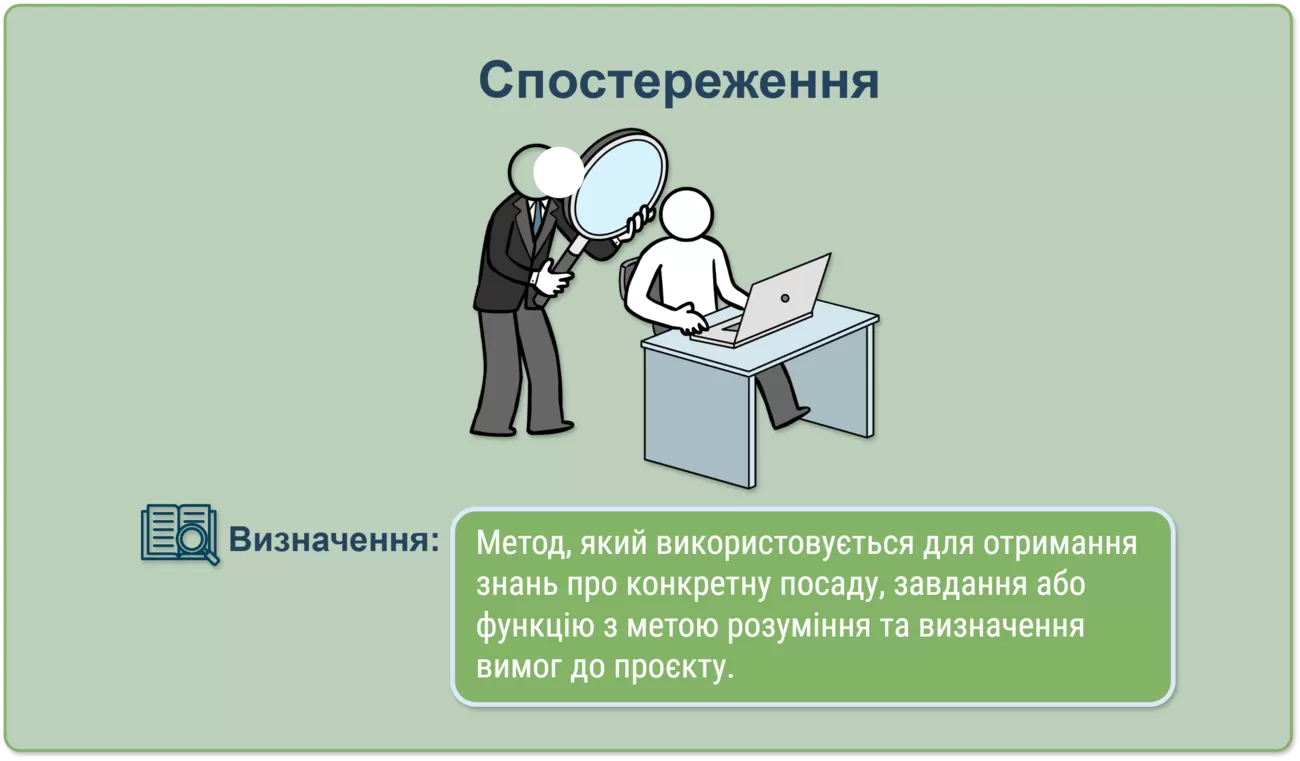 Важливо зазначити, що жоден метод не є універсальним. У проєктах, де вимоги неоднозначні або багаторівневі, може бути корисним поєднання кількох підходів. Наприклад, спостереження можуть доповнювати інтерв’ю, надаючи контекст того, як завдання виконуються на практиці.
