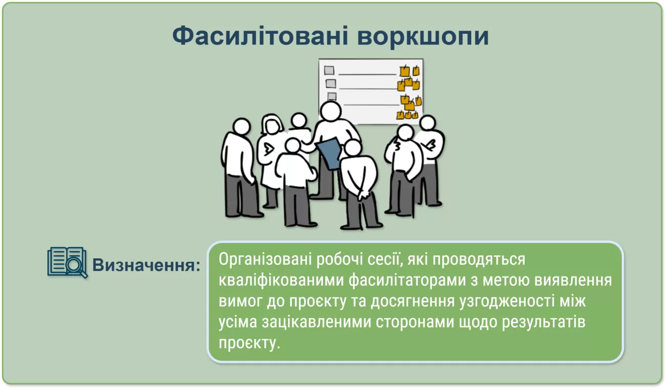 Крім того, опитування, інтерв’ю та воркшопи не лише сприяють збору вимог, а й створюють відчуття залученості у зацікавлених сторін. Це підвищує їхню лояльність до проєкту і готовність до співпраці.